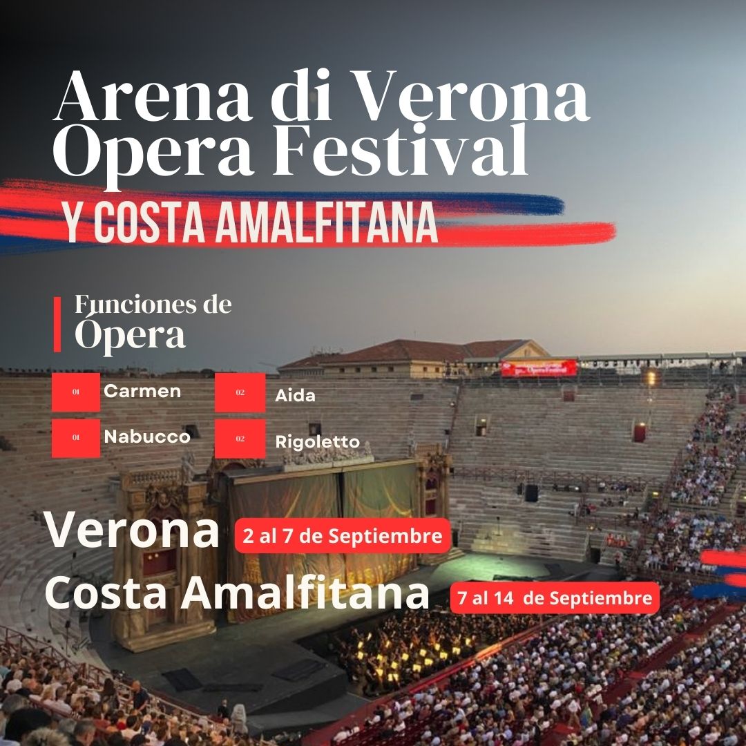 Un viaje donde el arte y la belleza se encuentran. Comenzamos en Verona, la ciudad de Romeo y Julieta, para vivir la emoción del Arenas de Verona Opera Festival. Bajo las estrellas, en un anfiteatro romano con más de 2.000 años de historia, nos dejaremos llevar por las voces más imponentes de la ópera mundial.