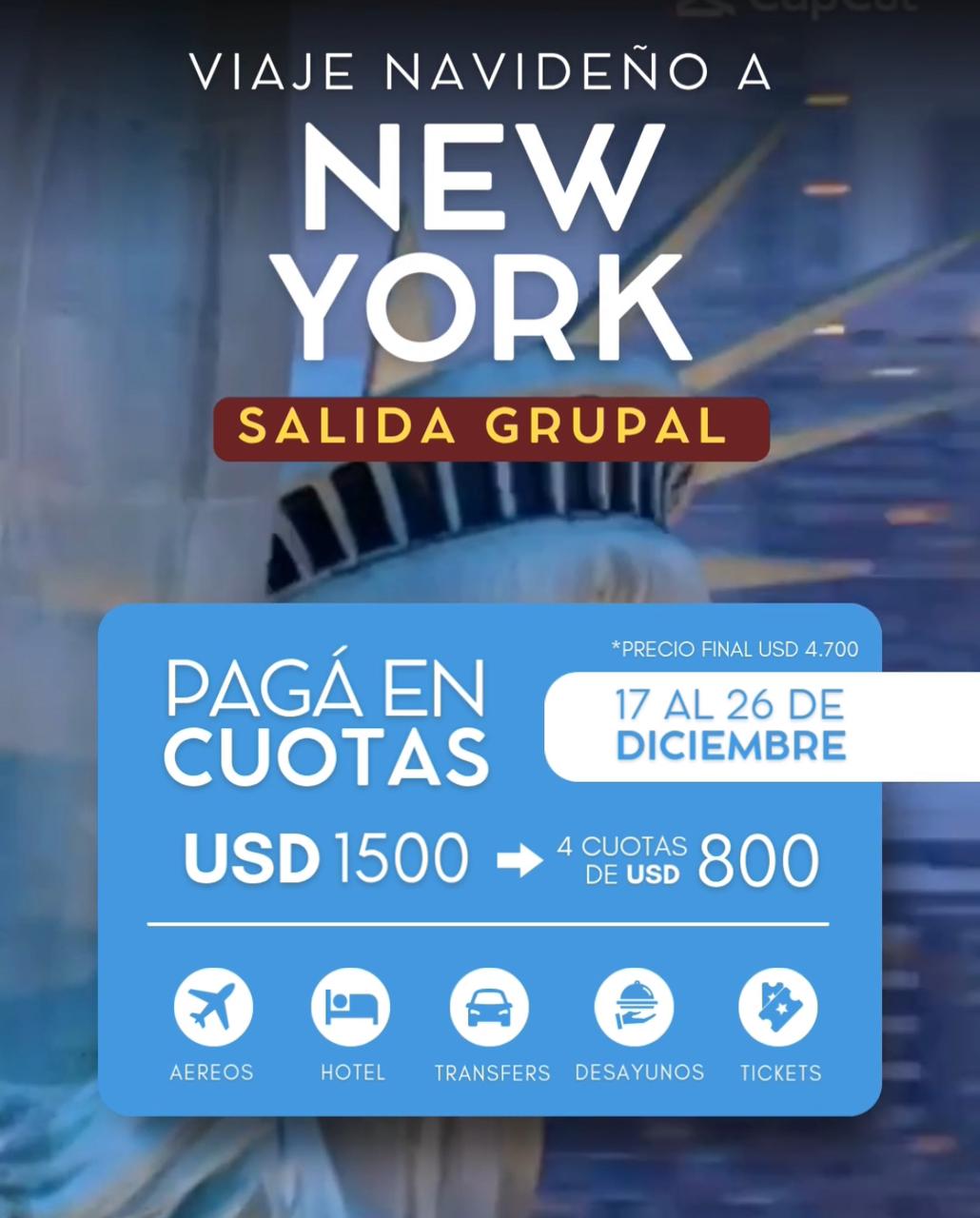 VIAJE GRUPAL NEW YORK NAVIDAD & BROADWAY ♥